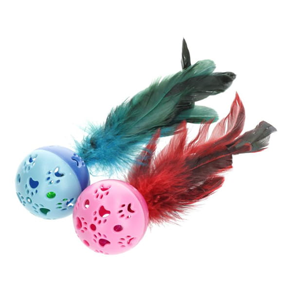HIPPIE PET Zabawka dla kota, PIŁKI Z PIÓRAMI, 18 cm, 2 szt.