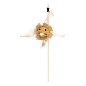 HIPPIE PET Zabawka dla kota, WĘDKA Z MYSZKĄ brązowa, 40 cm