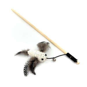 HIPPIE PET Zabawka dla kota, WĘDKA Z PTASZKIEM białym, 40cm