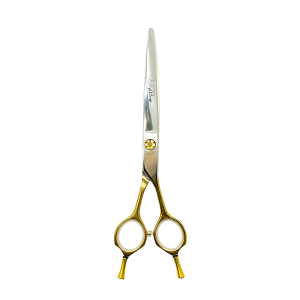 Klasyczne nożyczki groomerskie gięte, wykonane z japońskiej stali nierdzewnej 440c.