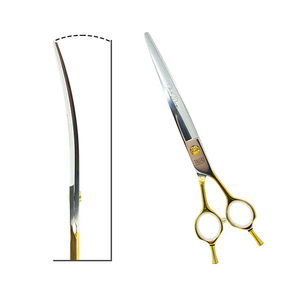 Klasyczne nożyczki groomerskie gięte, wykonane z japońskiej stali nierdzewnej 440c.