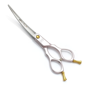 Klasyczne nożyczki groomerskie gięte, wykonane z japońskiej stali nierdzewnej 440c i aluminium, dzięki czemu są ultra lekkie.