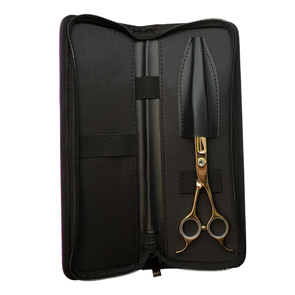 KLASYCZNE NOŻYCZKI GROOMERSKIE GIETE 18 cm, japońska stal nierdzewna 440c, kolor ZŁOTY, fioletowe etui