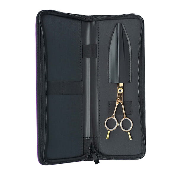 KLASYCZNE NOŻYCZKI GROOMERSKIE PROSTE, 14 cm, japońska stal nierdzewna 440c, kolor ZŁOTY, fioletowe etui