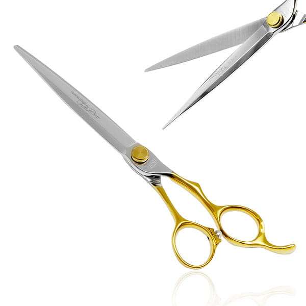 KLASYCZNE NOŻYCZKI GROOMERSKIE PROSTE, 18 cm, japońska stal nierdzewna 440c, kolor SREBRNY ZE ZŁOTYM UCHWYTEM, Perfection by Janita J. Plunge