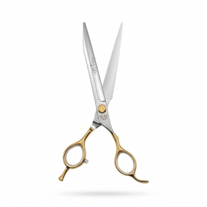 KLASYCZNE NOŻYCZKI GROOMERSKIE PROSTE 19 cm, 7,5 cala, japońska stal nierdzewna 440c, kolor SREBRNY ZE ZŁOTYM UCHWYTEM, Perfection by Janita J. Plunge