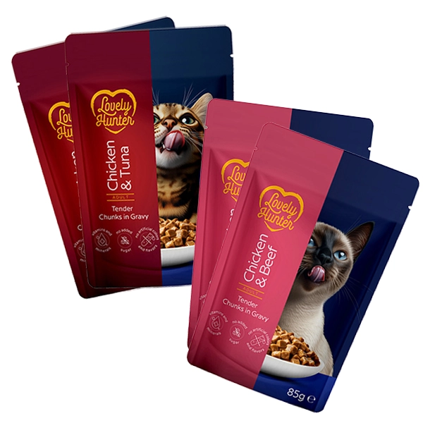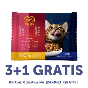 LOVELY HUNTER Adult Cat Set (2x Chicken Tuna, 2x Chicken Beef), 8x3+1 85g sasz. ZESTAW BOX