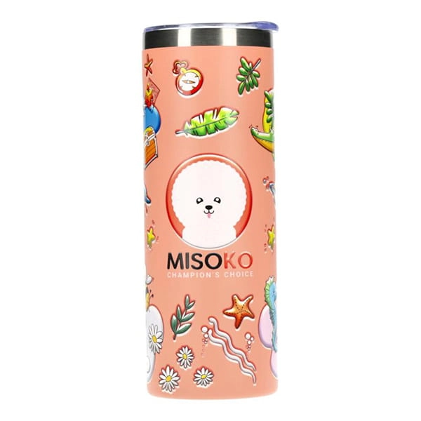 MISOKO Bidon na wodę ze stali nierdzewnej 600 ml, Wzór Misoko, kolor koralowy