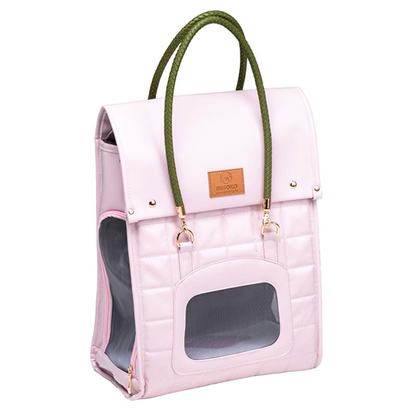 MISOKO Transporter plecak dla psów i kotów, 33x16x40cm, różowy, skóra