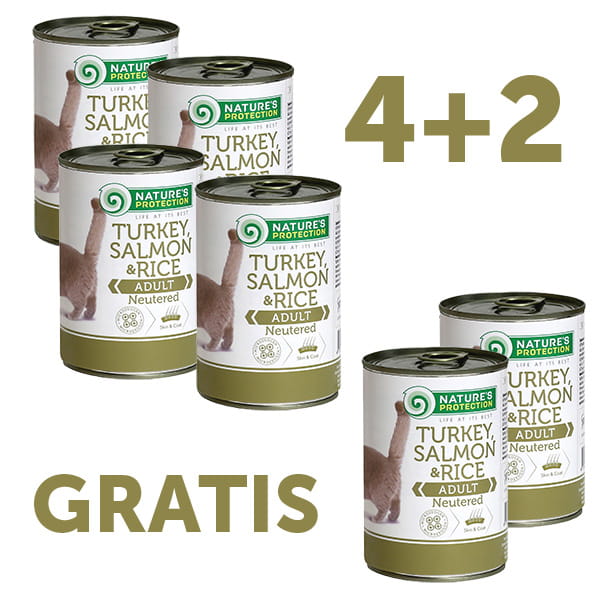 NP Adult Cat Neutered indyk, łosoś & ryż 400g 4szt.+2szt. GRATIS
