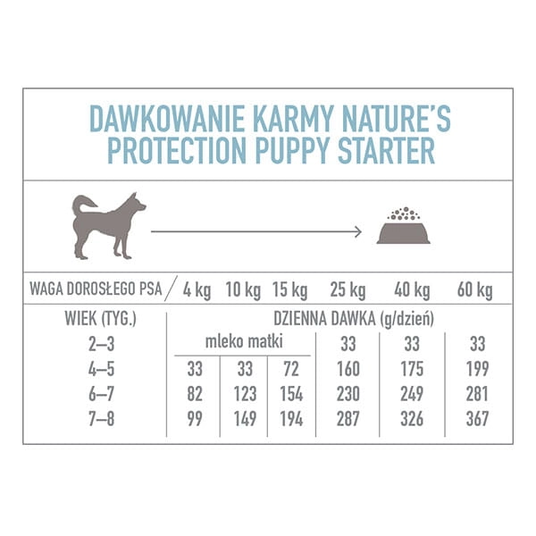 - Starannie wyselekcjonowane składniki i dodatki dietetyczne przygotowują szczenięta do przejścia na karmy Junior, zarazem dostarczając im wszystkich korzyści cechujących pozostałe karmy Nature’s Protection.