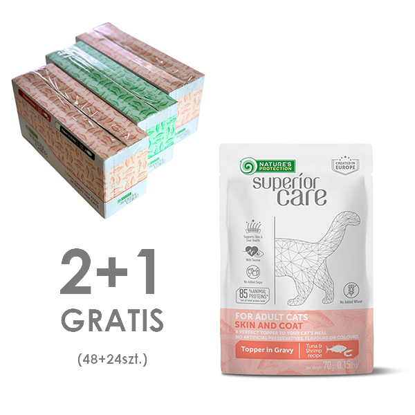 NP SC Skin and Coat Adult Cats, Tuna and Shrimps, 70g sasz. 48szt.+24szt. GRATIS