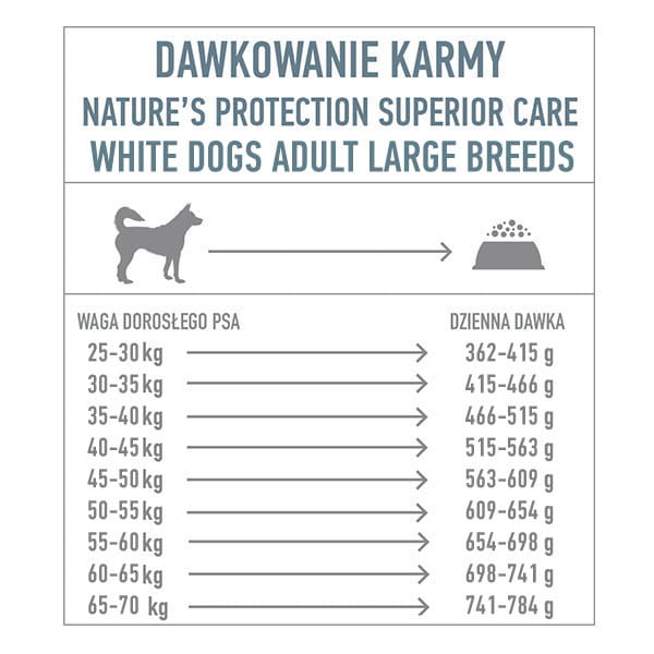 Wartości przedstawione w tabeli stanowią jedynie wskazówki i powinny być indywidualnie dostosowane do potrzeb każdego psa.
