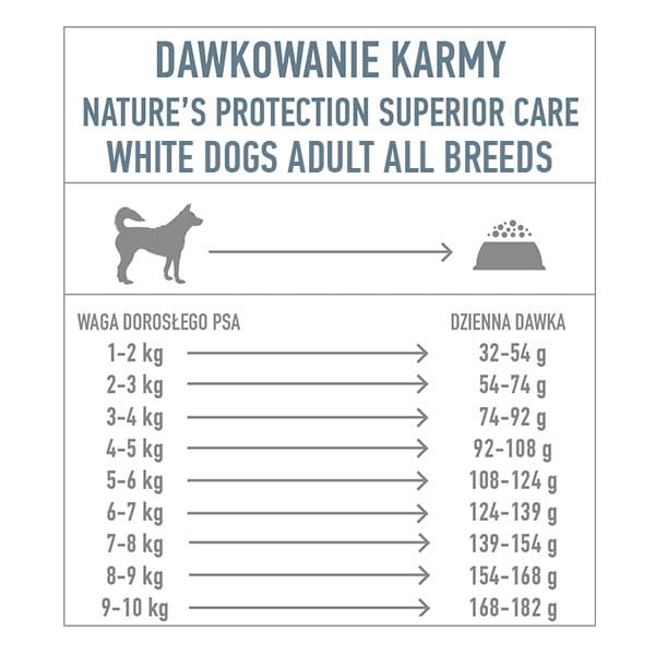 Aby uzyskać jak najlepsze wyniki, zalecamy karmić psa tylko Superior Care White Dogs, gdyż inna żywność może mieć wpływ na brązowienie sierści i w tym przypadku nie będzie widać żądanych wyników.