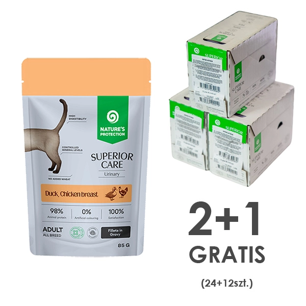 NP SUPERIOR CARE Adult Cat Urinary Grain Free Duck, Chicken Breast and Cranberries, 85g sasz. 24szt.+12szt. GRATIS