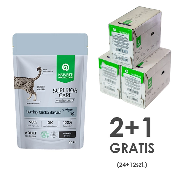NP SUPERIOR CARE Adult Cat Weight Control Grain Free Herring and Chicken Breast, 85g sasz. 24szt.+12szt. GRATIS