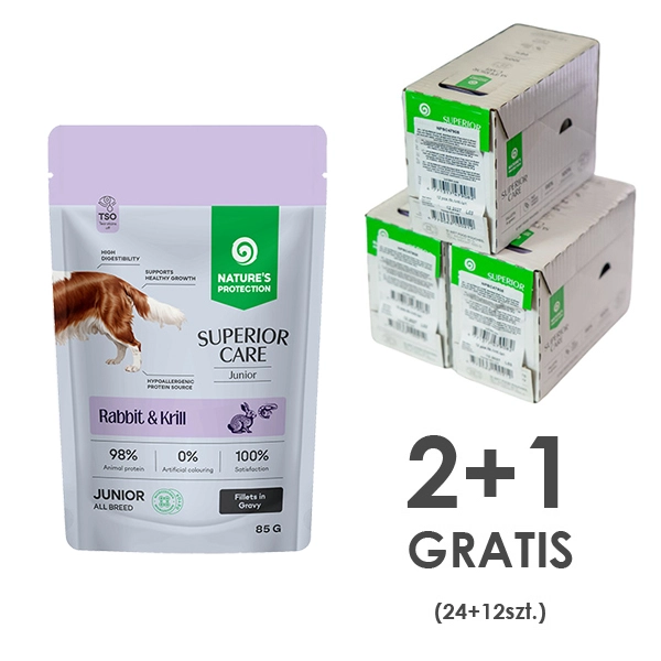 NP SUPERIOR CARE Junior All Breeds Grain Free Rabbit and Krill, 85g sasz. 24szt.+12szt. GRATIS
