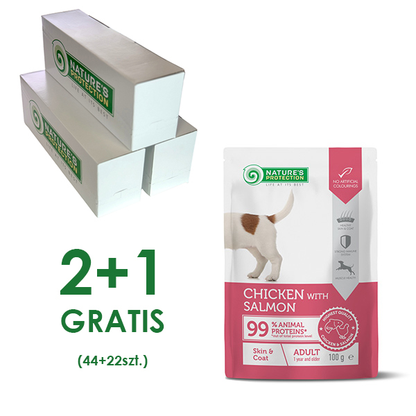 NP Skin and Coat Dog Adult with Chicken and Salmon 100 g sasz. 44szt.+22szt. GRATIS