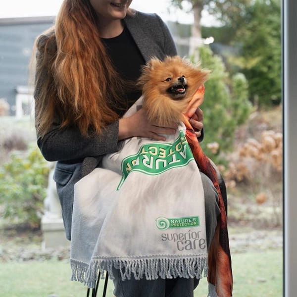 Nature’s Protection Superior Care Okrągły ręcznik z mikrofibry dla psów i kotów, rozmiar 150x150cm, wzór PSY