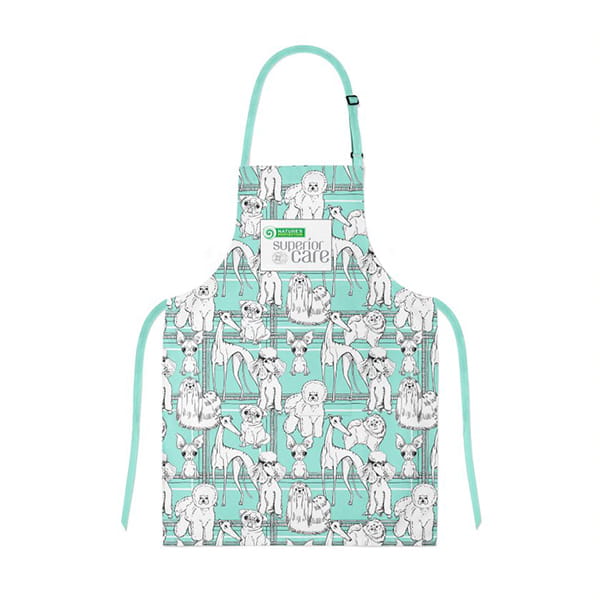Fartuch groomerski, idealny do użytku w profesjonalnych salonach pielęgnacji zwierząt, przychodniach weterynaryjnych, szkołach pielęgnacji zwierząt i hodowlach.