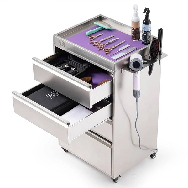 Tauro Pro Line Szafka groomerska ze stali nierdzewnej z uchwytem na narzędzia i kółkami, 87x40x70 cm