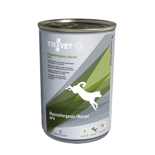 Dieta Trovet HPD jest pokarmem pełnoporcjowym przygotowanym z produktów najwyższej jakości, o których wiadomo, że nie powodują alergii pokarmowej. Wysokiej jakości mięso konia jest jedynym źródłem białka, natomiast węglowodany pochodzą wyłącznie z ziemniaków. Dieta nie zawiera produktów mlecznych, glutenu, laktozy, które mogą być przyczyną nietolerancji pokarmowej.